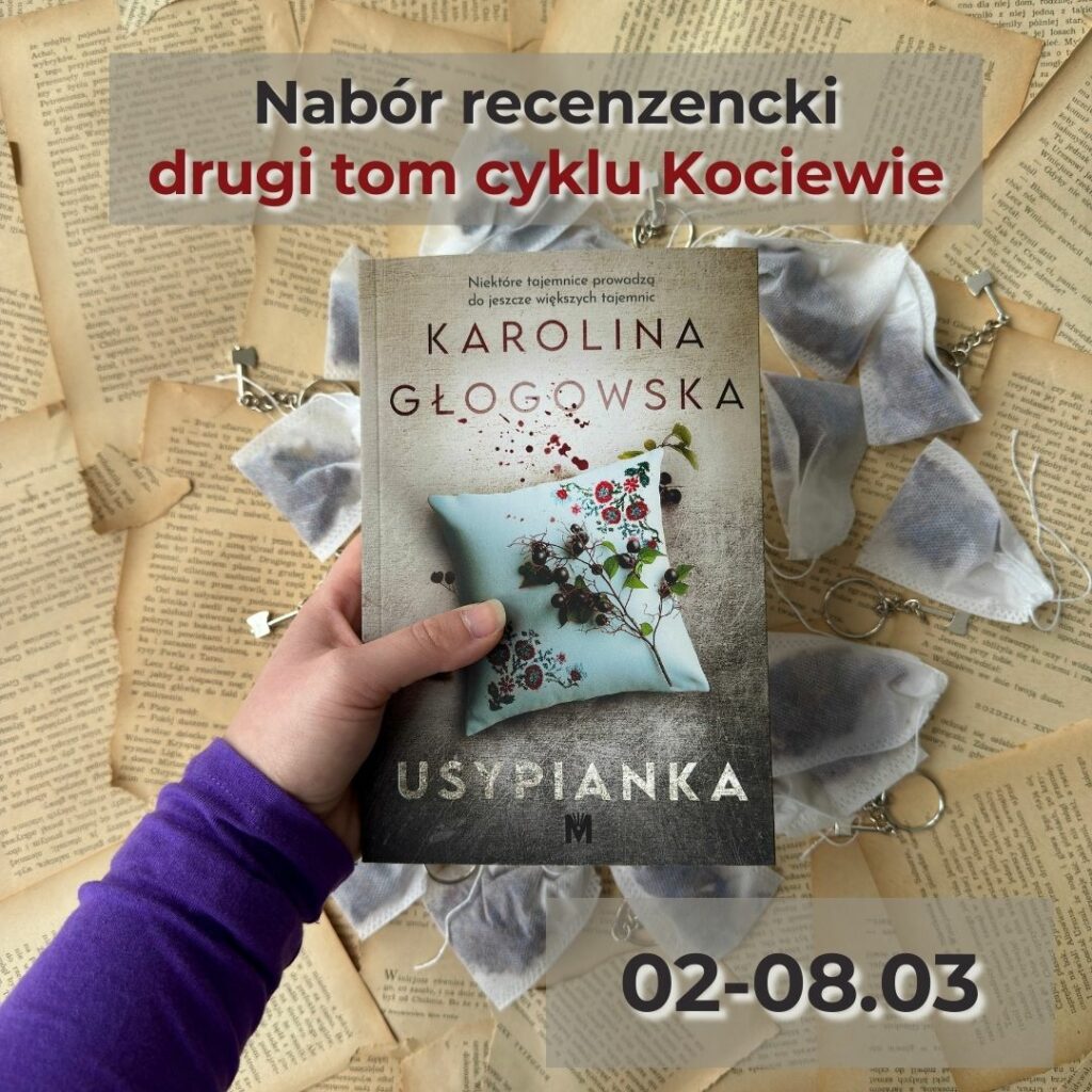 informujemy, że zapisy na egzemplarze recenzenckie książki „Usypianka” Karoliny Głogowskiej już się zakończyły. Zapraszamy do zgłoszeń na kolejne tytuły oraz do dołączenia do naszej grupy na Facebooku: https://www.facebook.com/groups/3004325203212197