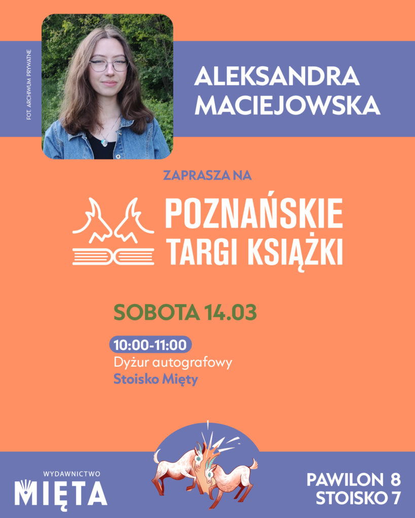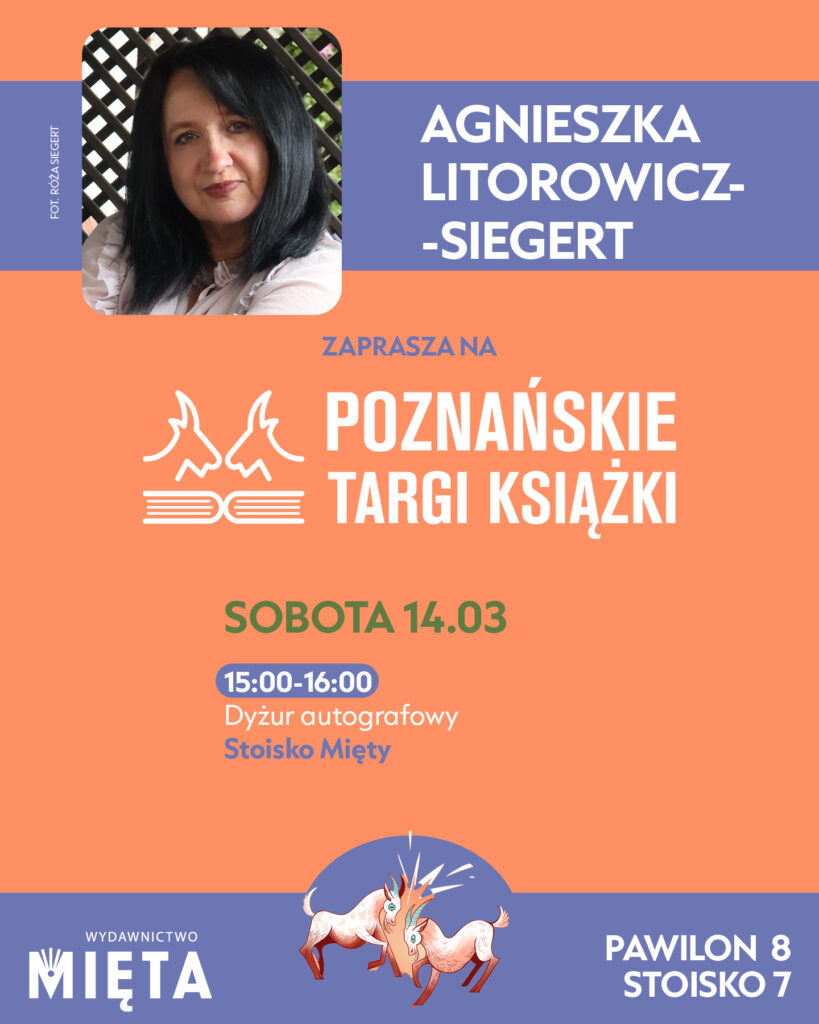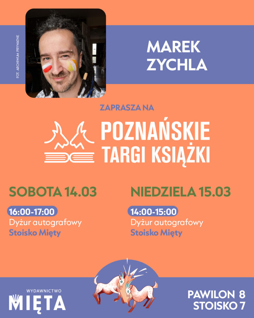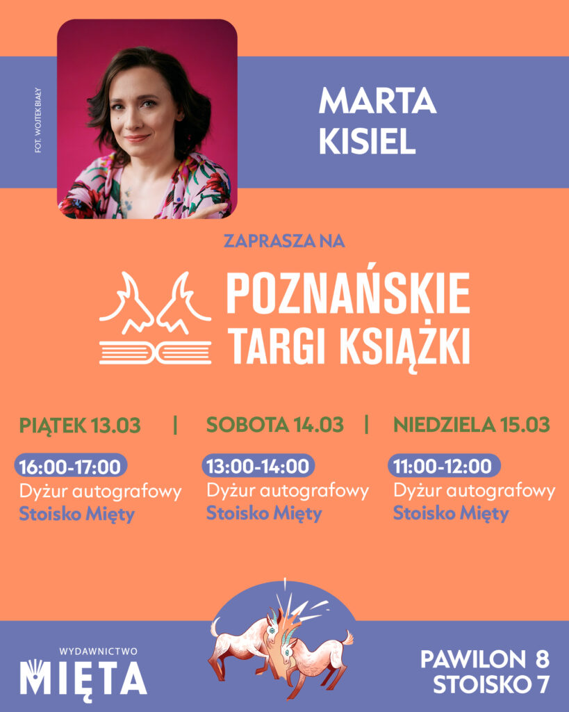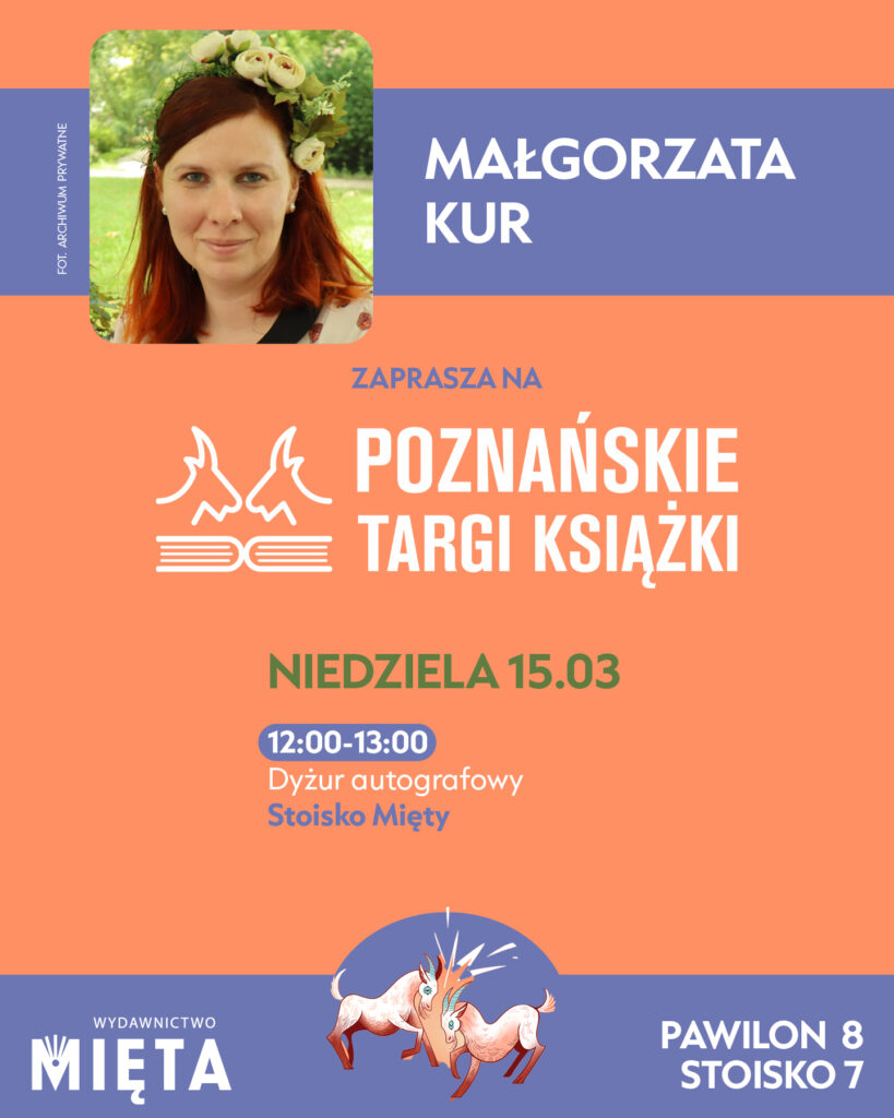 Serdecznie zapraszamy na Poznańskie Targi Książki. Wydarzenie, jak zawsze, odbędzie się na terenie Międzynarodowych Targów Poznańskich, ul. Głogowska 10, w dniach 13-15 marca 2026 r. Planujemy dla Was moc atrakcji. Będziecie mogli spotkać aż piętnaścioro miętowych autorów i posłuchać aż sześciu miętowych paneli i spotkań autorskich!
