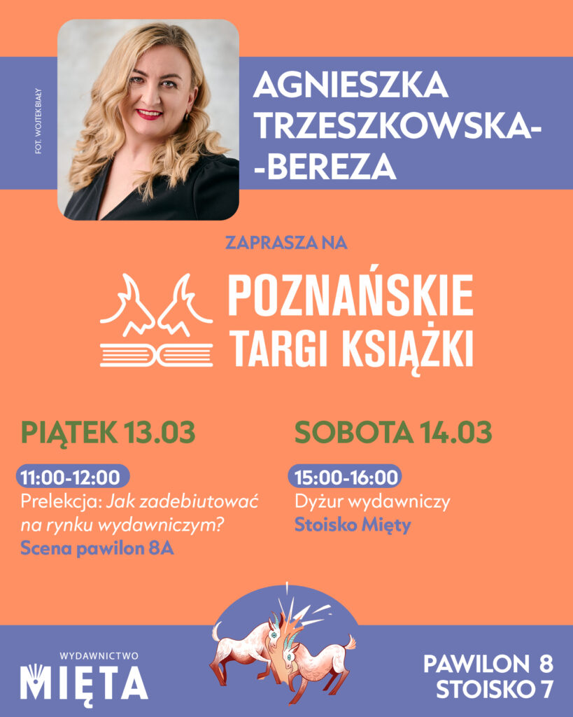 11:00-12:00  Jak zadebiutować na rynku wydawniczym? opowie Agnieszka Trzeszkowska-Bereza – scena, pawilon 8A