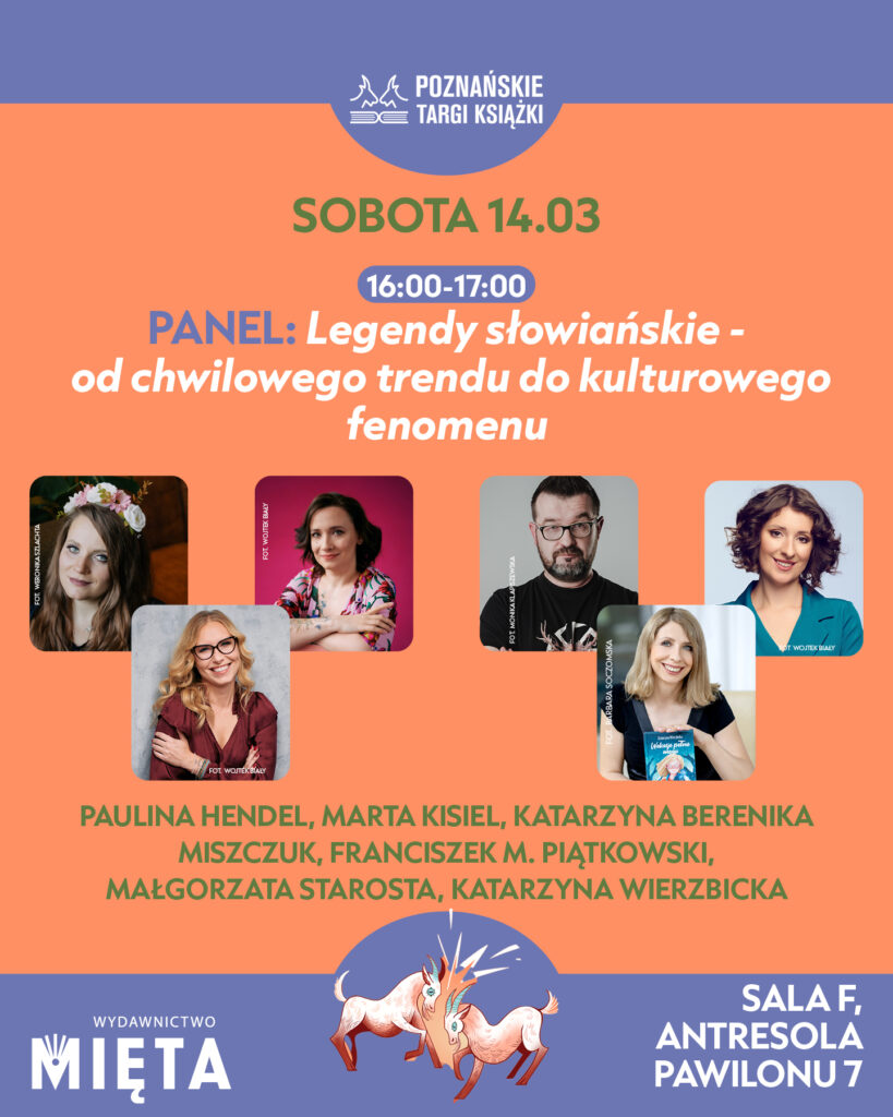 16:00-17:00 – Legendy słowiańskie – od chwilowego trendu do kulturowego fenomenu – Paulina Hendel, Marta Kisiel, Katarzyna Berenika Miszczuk, Franciszek M. Piątkowski, Małgorzata Starosta oraz Katarzyna Wierzbicka. Prowadzenie: Agnieszka Trzeszkowska-Bereza – sala F, antresola pawilonu 7