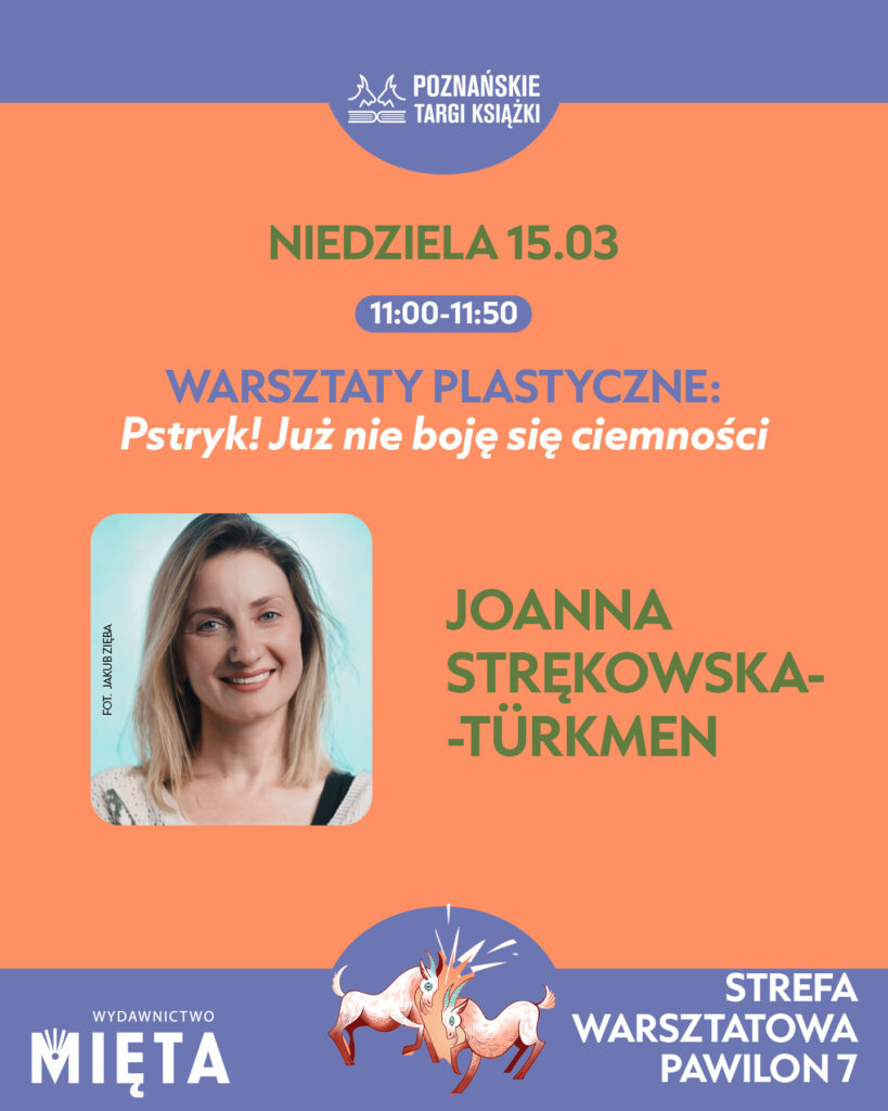 11:00-11:50  Warsztaty plastyczne dla dzieci: Pstryk! Już nie boję się ciemności. Prowadzenie: Joanna Strękowska-Türkmen – pawilon 7, strefa warsztatowa