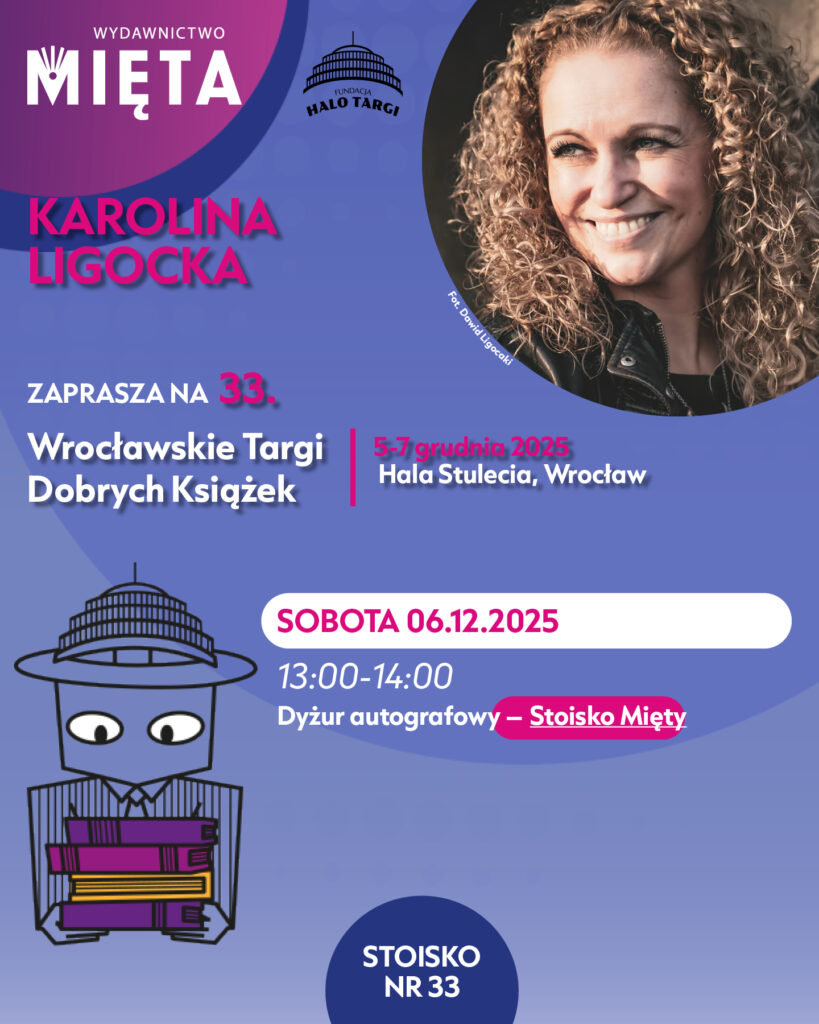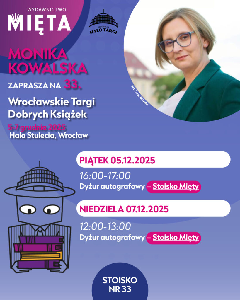 Planujemy dla Was moc atrakcji. Będziecie mogli spotkać aż dziewięcioro miętowych autorów, posłuchać dwóch miętowych paneli, a niestrudzona szefowa Agnieszka Trzeszkowska-Bereza będzie czekała na dyżurze wydawniczym w piątek, 05 grudnia w godzinach 17:00-18:00!